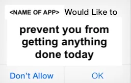 What if it looked more like this? “<NAME OF APP> would like to prevent you from getting anything done today”